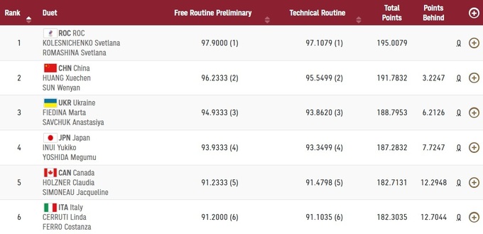 Українки Марта Федина та Анастасія Савчук показали результат 93.8620 (188.7953 в сумі), посіли третє місце і вийшли до фіналу.
