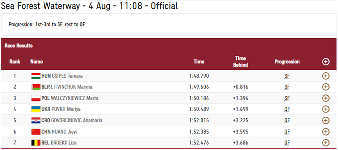 Повх (4 місце в заїзді) і Юрійчук (5 місце в заїзді) не зуміли напряму потрапити до півфіналу ОІ у веслуванні, куди відбиралися по 3 спортсменки з кожного заїзду.