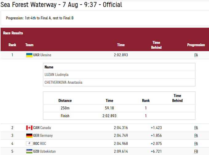 Каное-двійки. Лузан і Четверікова виграли півфінал та вийшли до фіналу