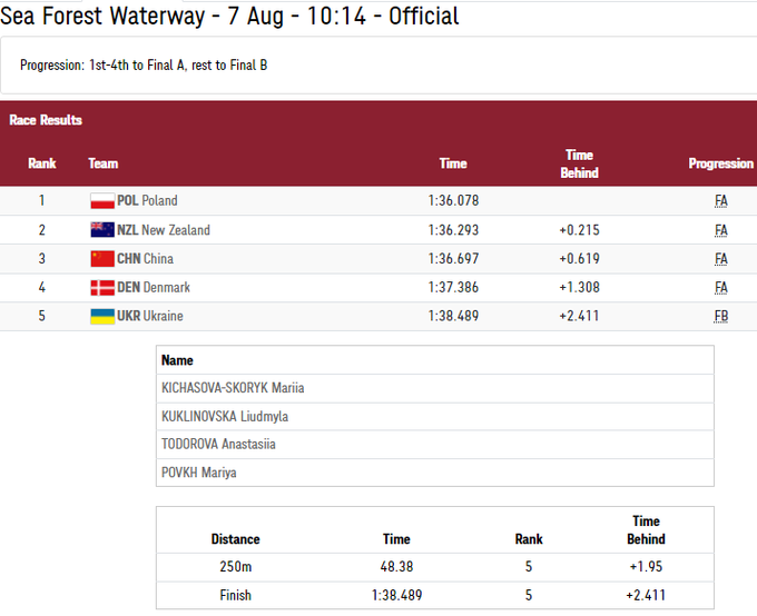 На Олімпійських іграх 2020 на Токіо відбувся півфінальний заїзд у веслуванні на байдарках-четвірках серед жінок на дистанції 500 метрів.