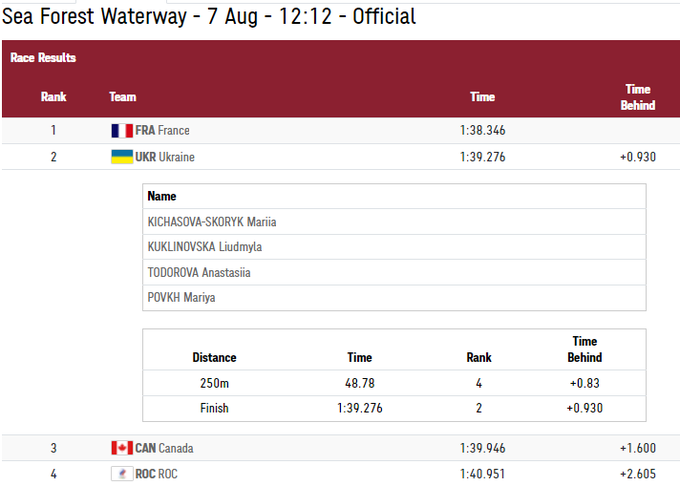Також фінальний заїзд пройшов у веслуванні на байдарках-четвірках серед жінок на дистанції 500 метрів.