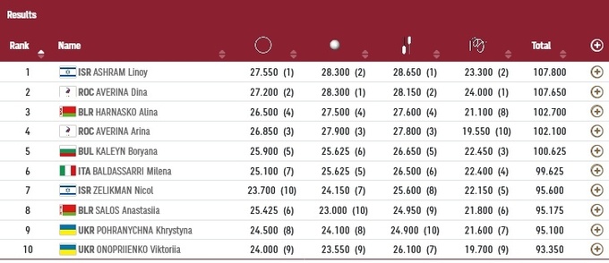 Золото несподівано виграла гімнастка з Ізраїлю, яка випередила представниць ОКР і Білорусі.