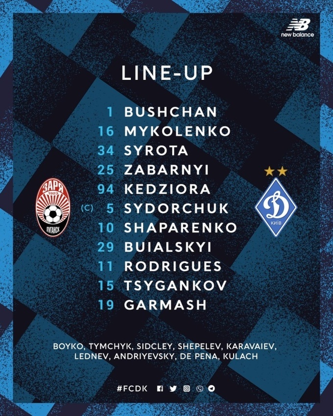 Динамо: Бущан, Кендзьора, Забарний, Сирота, Миколенко, Сидорчук, Буяльський, Шапаренко, Циганков, Родрігеш, Гармаш