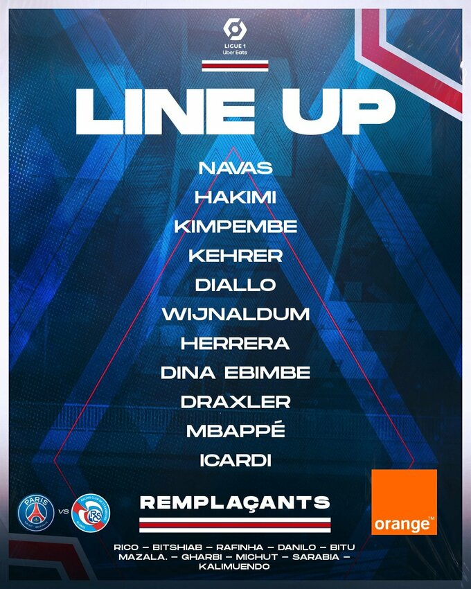 ПСЖ: Навас, Хакимі, Кімпембе, Керер, Діалло, Вейналдум, Еррера, Ебімбе, Дракслер, Мбаппе, Ікарді