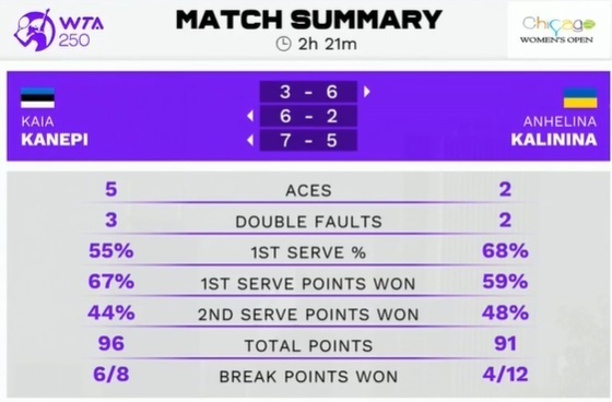 Ангеліна Калініна (Україна) - Кайя Канепі (Естонія) - 6:3, 2:6, 5:7