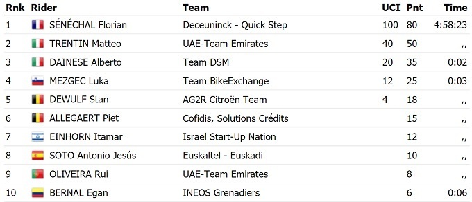 Французький гонщик команди «Deceuninck Quick Step» Флоріан Сенешаль став переможцем 13-го етапу Вуельти-2021. У фінішному спринті він випередив двох італійців - Маттео Трентіна і Альберто Дайнезе.