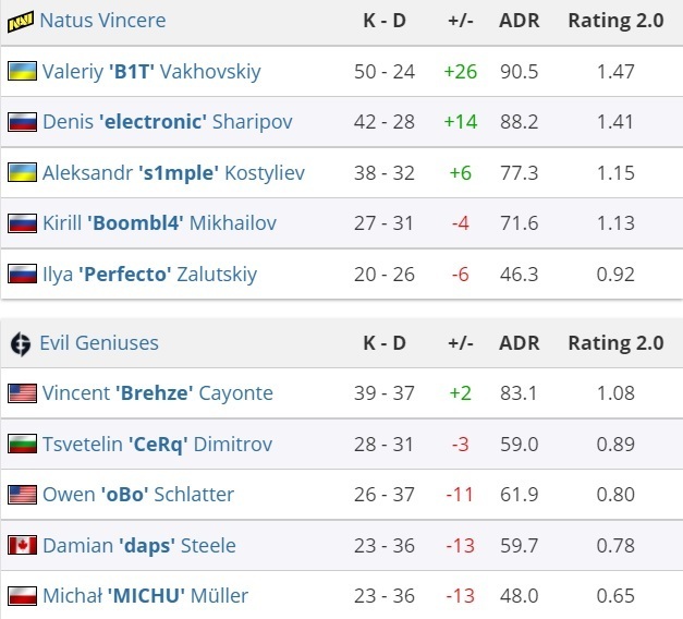 Це третя перемога NAVI на турнірі, раніше команда розібралися з fnatic. і з mousesports, а також поступилася BIG.