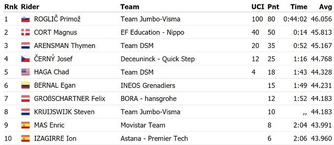 Словенський гонщик команди «Jumbo Visma» Прімож Рогліч став переможцем Вуельти-2021. Він виграв і останній етап багатоденки, випередивши Магнуса Корта і Таймена Аренсмана. Українець Марк Падун з «Bahrain Victorious» сьогодні став 132-м, а в загальному заліку фінішував 59-м.