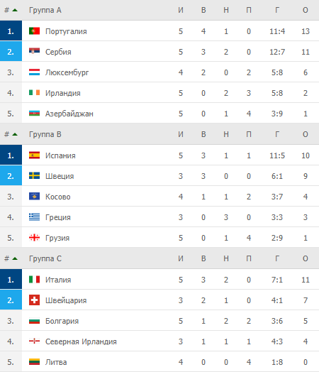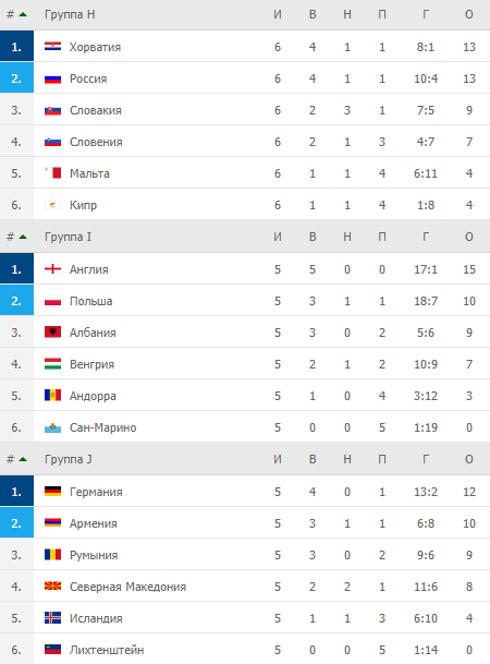 Турнірні таблиці кваліфікації ЧС-2022