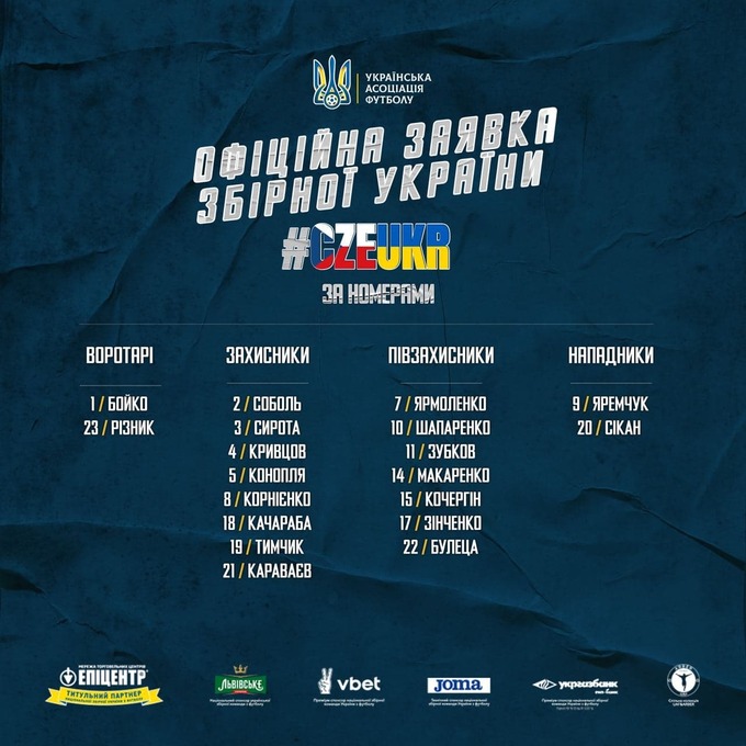 Втрат немає. Відома остаточна заявка збірної України на матч з Чехією