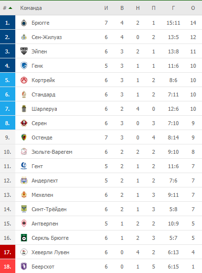 Турнірна таблиця чемпіонату Бельгії