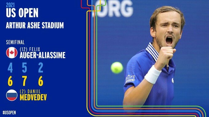 У фіналі росіянин зіграє проти Новака Джоковича з Сербії (№1 ATP) або Александра Звєрєва з Німеччини (№4 ATP).