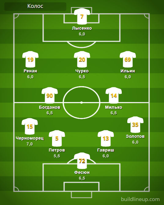 «Колос»: Фесюн – Чорноморець, Петров, Гавриш, Золотов – Богданов (Задоя, 67), Мілько – Ренан (Костишин, 72), Чурко, Ільїн – Лисенко (Сітчінава, 72).