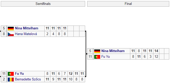 В 1/8 фіналу українка перемогла росіянку Поліну Михайлову (4:1), а в чвертьфіналі поступилася 2-й сіяній на турнірі представниці Румунії Бернадетті Сьоч (1:4).