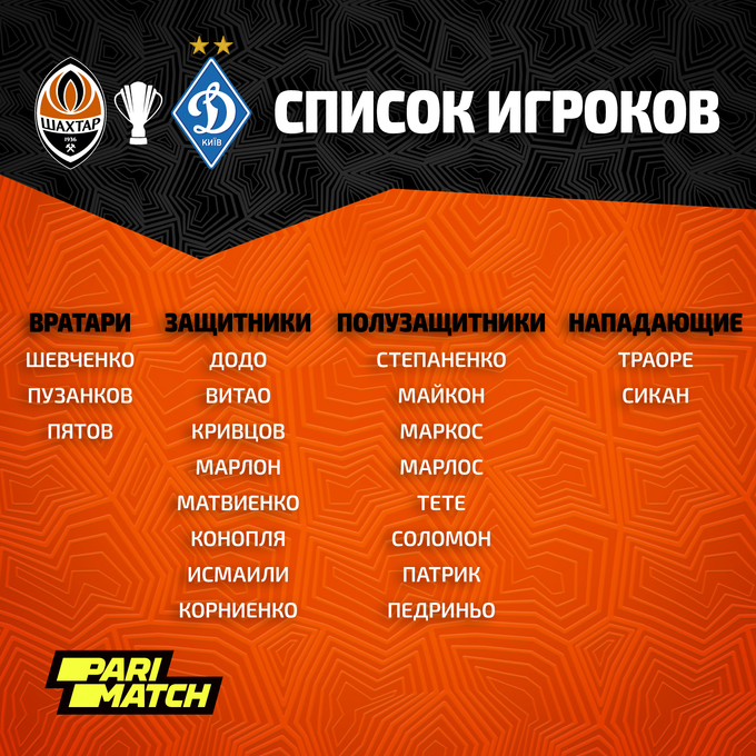 Донецький «Шахтар» опублікував заявку на матч за Суперкубок України з «Динамо».