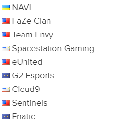З дев'яти запрошених команд: шість представників Америки, 2 представника європейського регіону і лише один представник України і всього СНД регіону, команда Natus Vincere.
