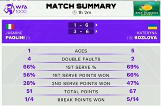 Катерина Козлова (Україна) - Жасмін Паоліні (Італія) - 6:1, 6:3