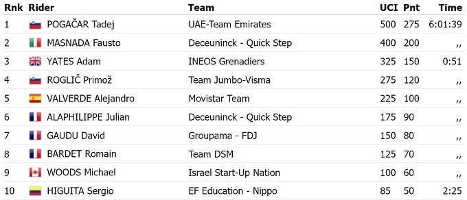 Словенський гонщик «UAE Emirates» Тадей Погачар став переможцем Ломбардії-2021. У фінішному спринті він випередив італійця Фаусто Маснаду з «Deceuninck Quick Step».