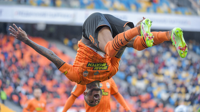 Якщо ви не пам'ятаєте, як святкував свої забиті голи екс-нападник «Шахтаря» початку двотисячних Джуліус Агахова, не біда: тепер його стиль став фішкою для атакуючого півзахисника «гірників» Фернандо. Забивши другий гол у матчі проти «Зорі», молодий бразилець зробив видовищне сальто. Можливо, кульбіти у виконанні Агахови виглядали крутіше, але пірует Фернандо - теж на рівні. А після першого забитого м'яча Фернандо одягнув окуляри, які на час позичив у фотографа. Каже, і далі буде так само святкувати взяття воріт.