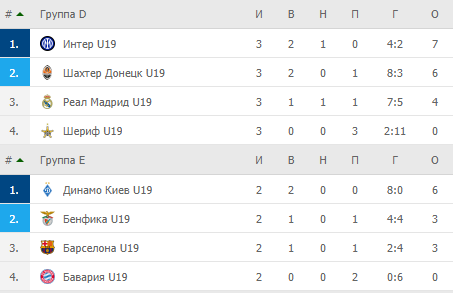 Турнірні таблиці