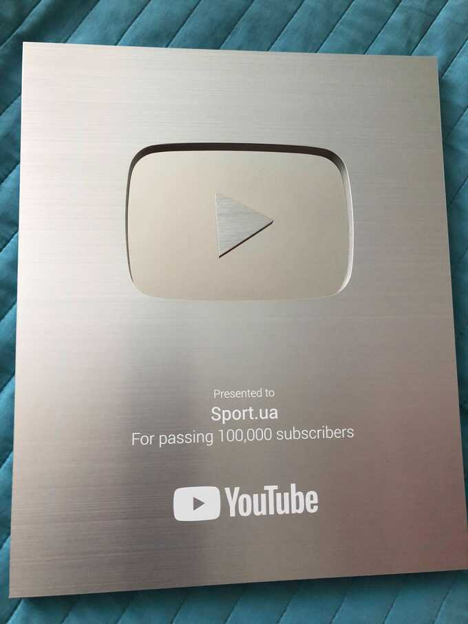 Sport.ua отримав від YouTube срібну кнопку. Ця нагорода дається каналам, у яких понад 100 тисяч підписників.