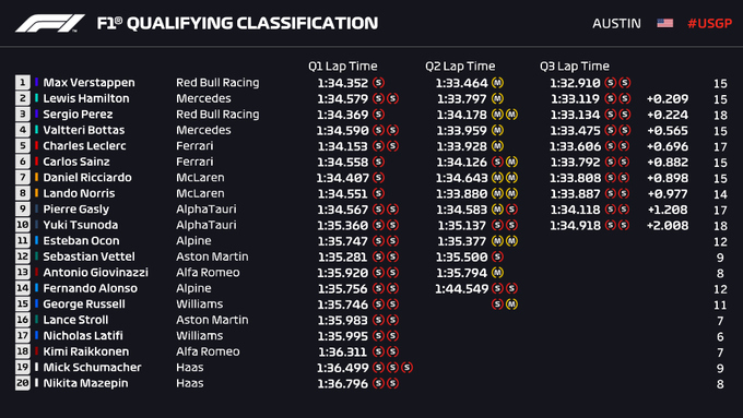 В результаті поул взяв Макс Ферстаппен. В останній спробі він випередив не тільки Льюїса Хемілтона, але і напарника Серхіо Переса, який в певний момент був на проміжному поулі.