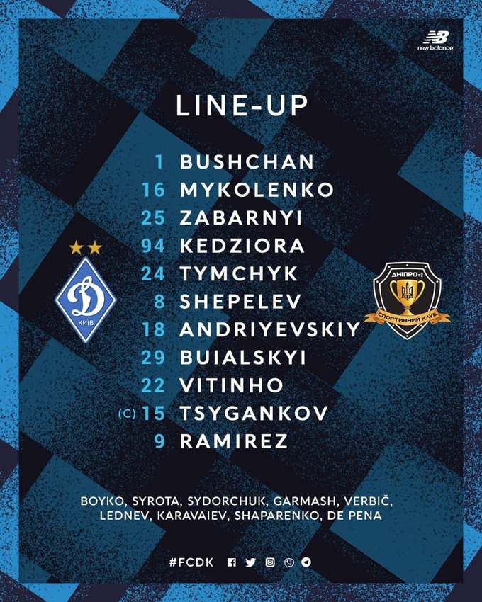 «Динамо»: Бущан - Тимчик, Забарний, Миколенко, Кендзьора, Андрієвський, Шепелєв, Буяльський, Циганков, Вітіньйо, Рамірес.