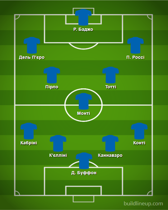 Захисники: Антоніо Кабріні (народився в 1957 р.), Джорджо К’єлліні (народився в 1984 р.), Фабіо Каннаваро (народився в 1973 р.), Бруно Конті (народився в 1955 р.).