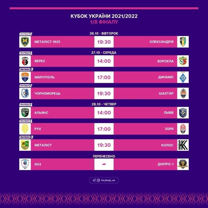 Інші матчі стадії 1/8 фіналу відбудуться 27 та 28 жовтня