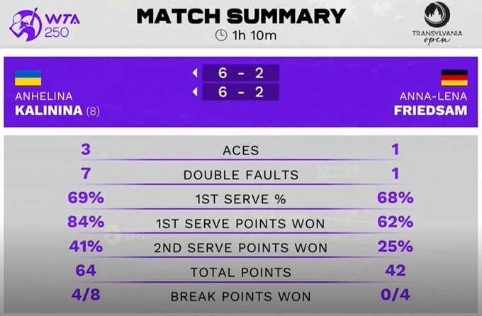 Ангеліна Калініна (Україна) – Анна-Лена Фрідзам (Німеччина) – 6:2, 6:2