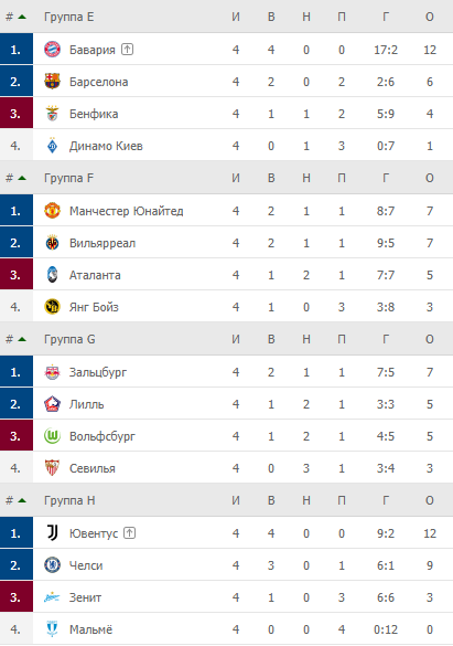 Ниже с 0 Мальмё и Бешикташ.