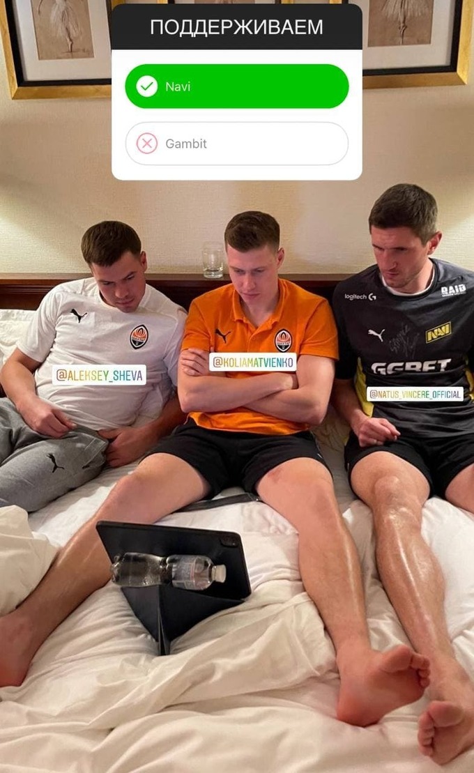 За «Народжених Перемагати» вболівали футболісти донецького «Шахтаря» Сергій Кривцов, Микола Матвієнко та Олексій Шевченко. Гравці дивилися матч NAVI – Gambit у готельному номері. Спільне фото виклав Кривцов, який одягнув ігрову футболку Natus Vincere.