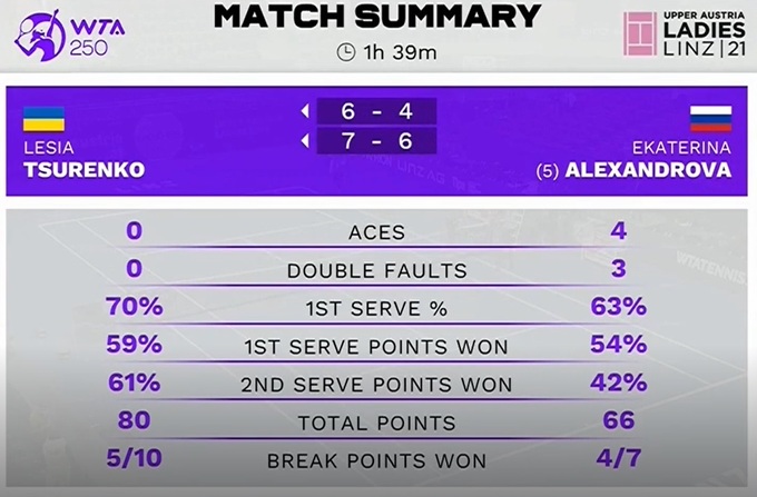 Це була третя зустріч тенісисток та третя перемога Цуренко. Леся виграла 15 із 19 останніх матчів проти росіянок.