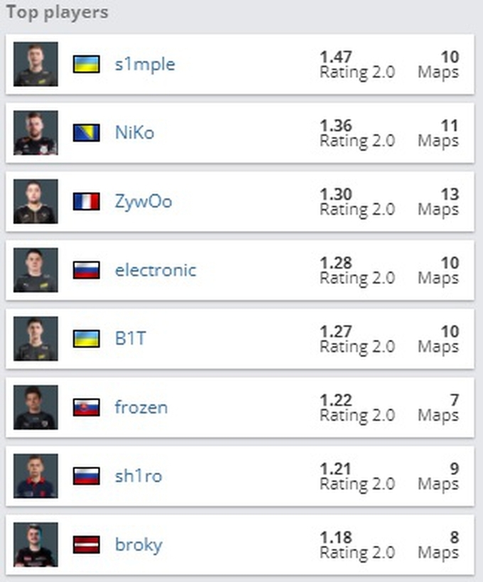 Рейтинг найкращих гравців PGL Major Stockholm: