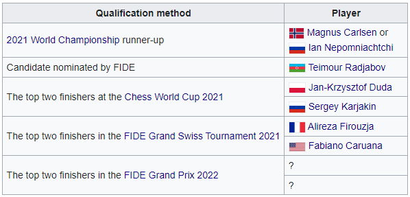 У чоловіків у Турнір претендентів 2022 вийшли Аліреза Фіруджа (Франція), переможець «швейцарки», та Фабіано Каруана (США), який посів друге місце. Найкращим з українців став Антон Коробов (12-те місце).
