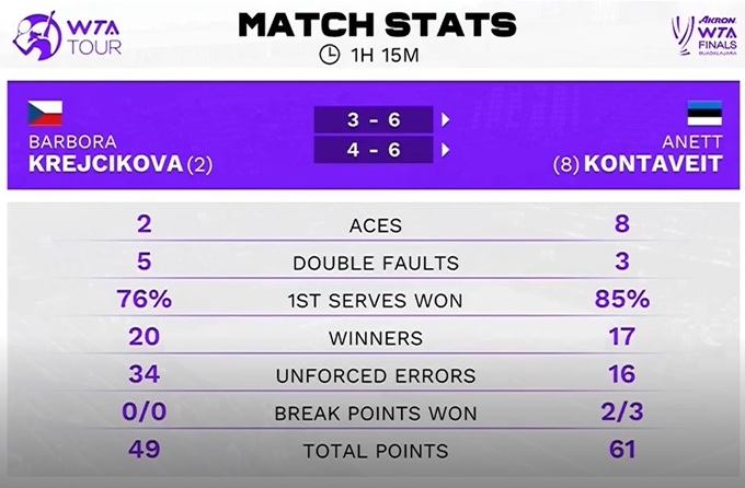 Анетт Контавейт (Естонія) – Барбора Крейчикова (Чехія) – 6:3, 6:4