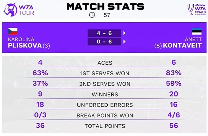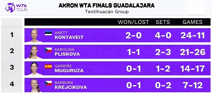 Дві перемоги у двох сетах означають, що Контавейт достроково пробилася до півфіналу. Вона ще може фінішувати на другому рядку, але точно не нижче.