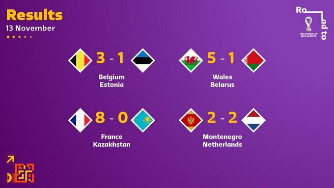 Збірна Франції на своєму полі очікувано розгромила Казахстан з рахунком 8:0, виграла групу та здобула пряму путівку на ЧС-2022. Чотири голи оформив Кіліан Мбаппе.