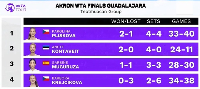 За будь-яких розкладів у заключному матчі Контавейт фінішує першою в групі, а Плішкова або Мугуруса зіграють у півфіналі проти Паули Бадоси з Іспанії.