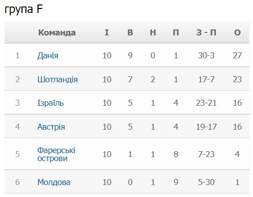 Австрія обіграла Молдову, але залишилася четвертою. На третьому місці завершив Ізраїль.