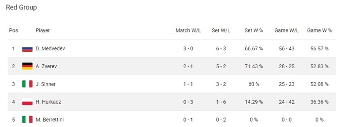 У разі перемоги Сіннера в цьому матчі він би набирав однакову кількість перемог із Медведєвим і Звєрєвим, але поступався б їм за додатковими показниками (кількість зіграних матчів).