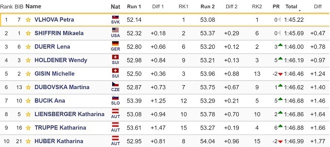 Словацька гірськолижниця Петра Влхова здобула другу поспіль перемогу в слаломі на етапі Кубка світу у фінському Леві. Як і вчора, вона випередила американку Мікаелу Шиффрін і німкеню Лєну Дюрр.