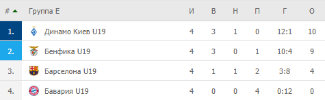 Юнацька ліга УЄФА. Турнірна таблиця після 4-го туру