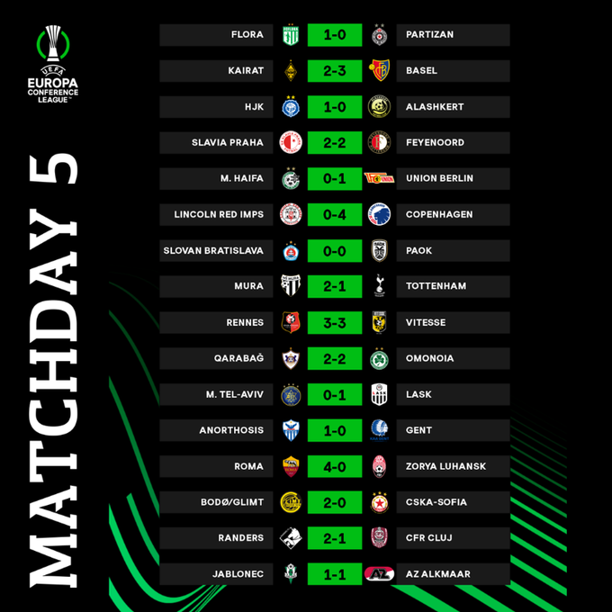 25 листопада відбулися матчі 5-го туру групового етапу Ліги конференцій