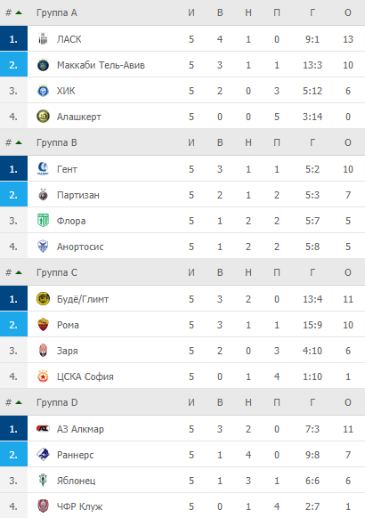 - 17:00. Флора (Естонія) – Партизан (Сербія) – 1:0