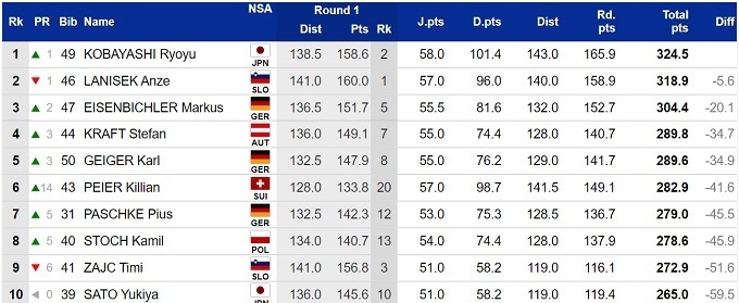 Японський стрибун Рьою Кобаясі виграв перший особистий старт на етапі Кубка світу у фінській Руці. Для нього це 20-та у кар'єрі перемога на Кубку світу. Компанію на подіумі йому склали слов'янець Анже Ланішек та німець Маркус Айзенбіхлер.