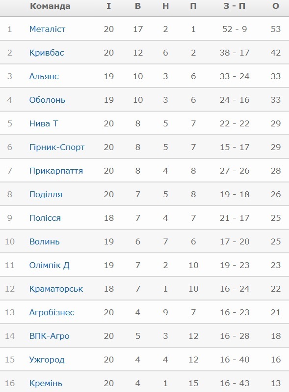 «Металіст» пішов на зимову перерву у статусі лідера дивізіону, маючи перевагу над «Кривбасом», що становить 11 очок.