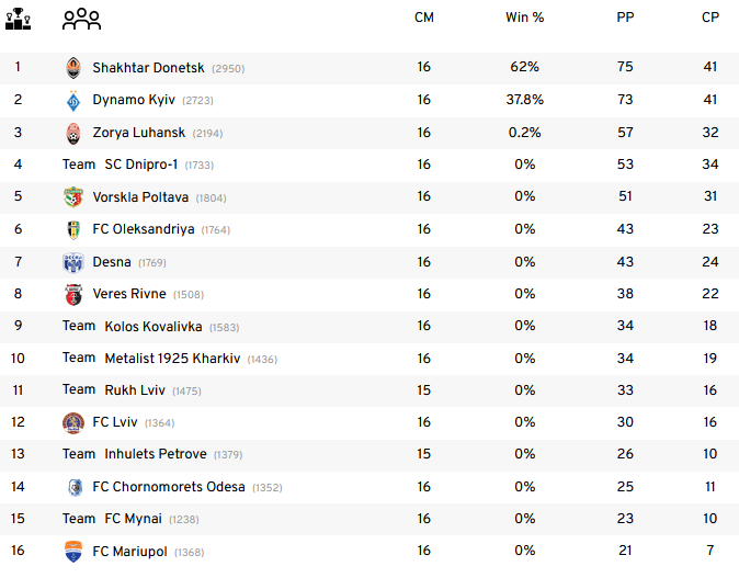 Відомий статистичний веб-портал Euro Club Index оцінив ймовірності перемоги команд в Українській Прем'єр-лізі.