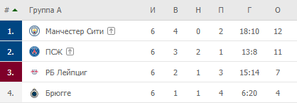 В результаті «Ман Сіті» та «ПСЖ» вийшли до 1/8 фіналу ЛЧ, а РБ «Лейпциг» продовжить боротьбу в Лізі Європи.