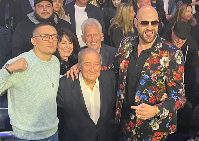 Спочатку Усик зробив фото-бомбу, коли Ф'юрі позував зі своїм промоутером Бобом Арумом, а потім усі троє зробили спільне фото.